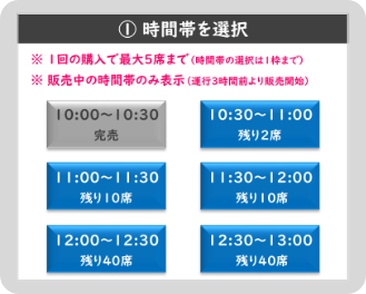 ※10時~13時までの時間帯のチケットが30分枠単位で選択可能です
