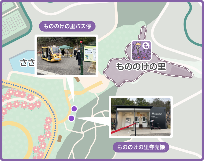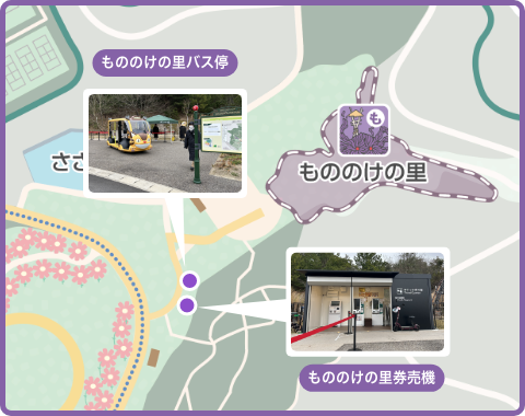 指定時間内に「もののけの里」「どんどこ森」付近のAPMネコバス専用のバス停にお越しください。